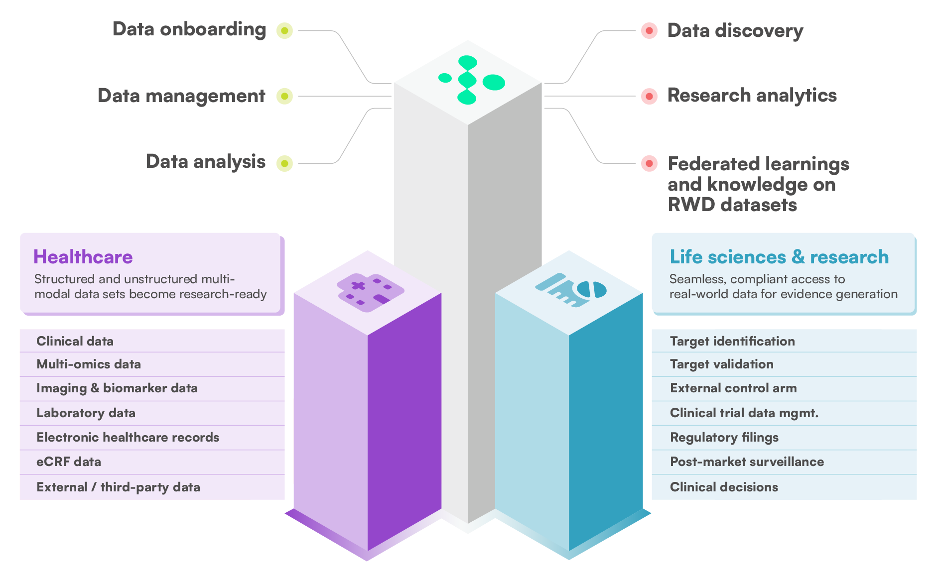 Advance discovery and development, secure regulatory approval, and maximize market access using multi-modal data sourced and harmonized across multiple settings โ including structured imaging data โ in a single, secure environment.