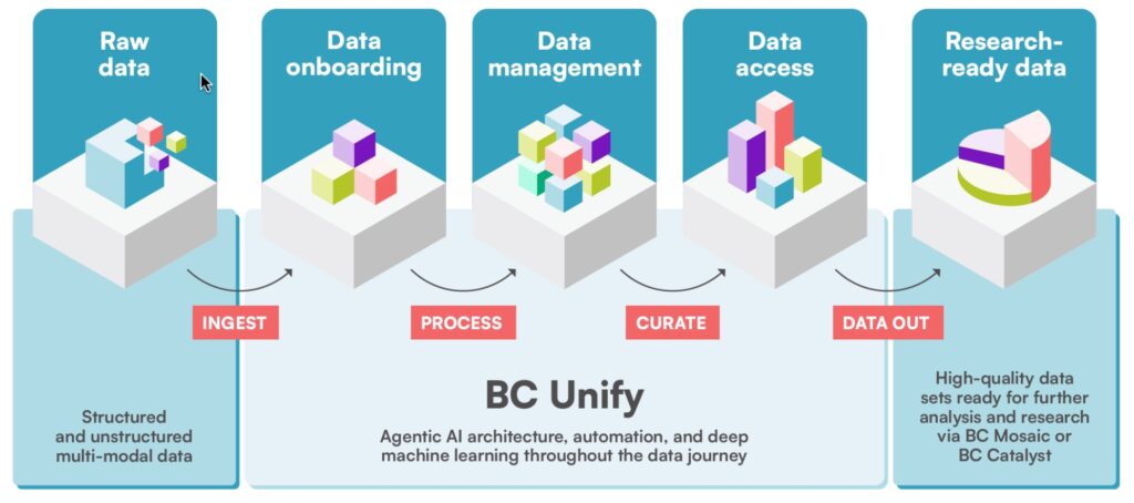 Niko: BC Unify uses AI across the entire data lifecycle โ from ingestion and harmonization to enrichment, validation, and delivery. It extracts knowledge from unstructured clinical notes, processes public data sources, and builds knowledge bases that power the rest of the BC Platforms portfolio.
